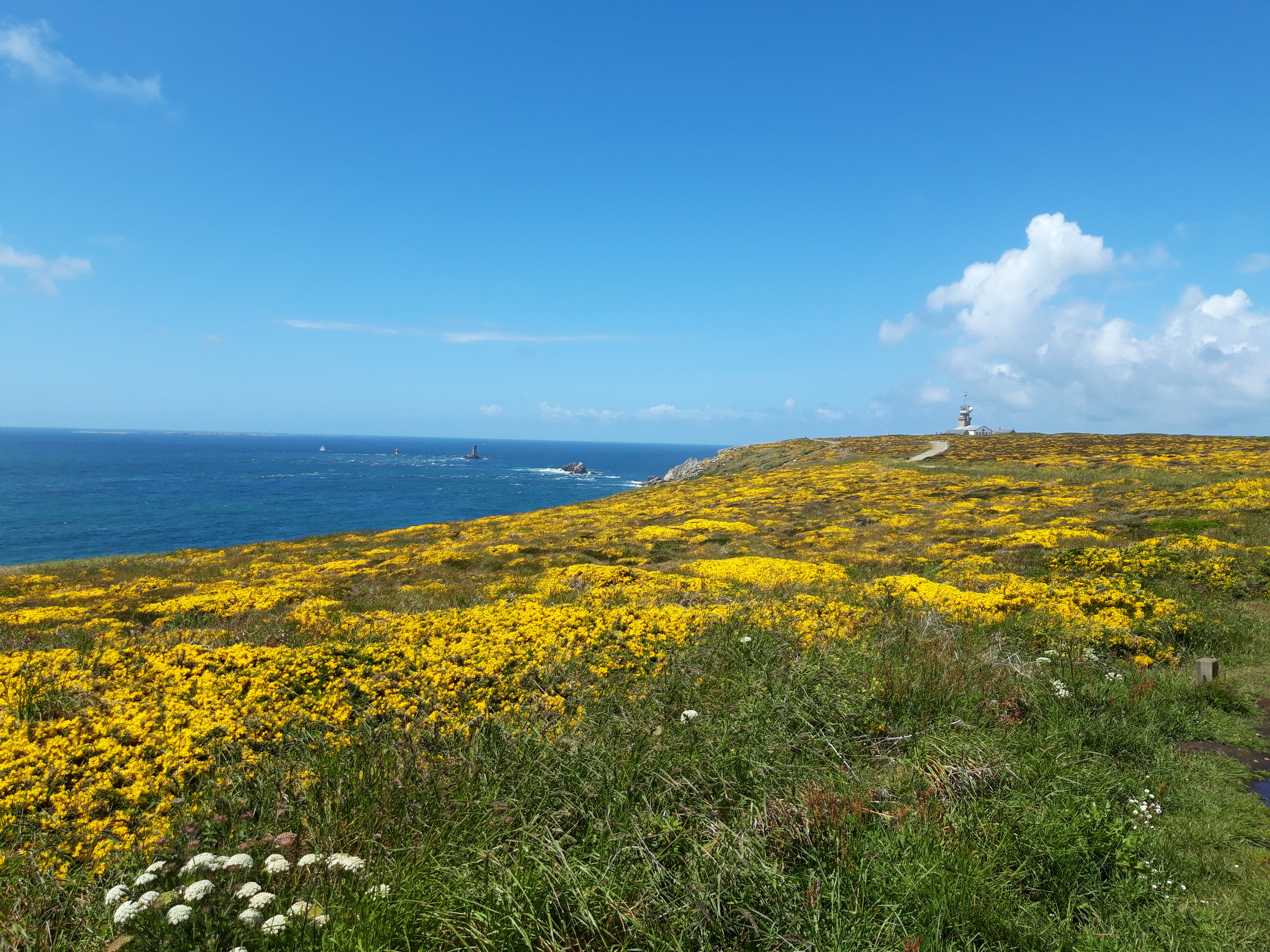 Point de vue imprenable sur la pointe du Raz et par temps dégagé sur le Raz et l'ile de Sein .